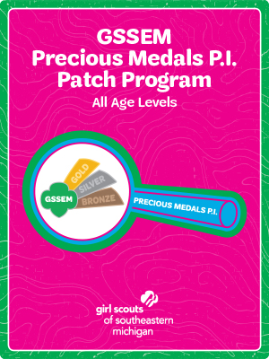 Become a Precious Medals Private Eye! Discover and explore some of the mysteries regarding the Girl Scout High Awards, Bronze, Silver and Gold.