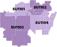 into four (4) council service units: SU1101, SU1102, SU1103, SU1104.